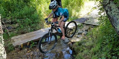 We begin each camp at our park in Banner Elk. There we will asses each kids skills and divide up by skill level and practice all different handling skills. At the park we have basic flat trail to multiple creek crossings and wooden features. You can see more on our facebook page Cycle4life bike park. As the skill levels allow we also utilize Hemlock Ridge trail in BE and the Emerald Outback trails on Beech Mountain. This year we hope to add some loop rides to the Holsten Camp trails along side Wildcat lake.